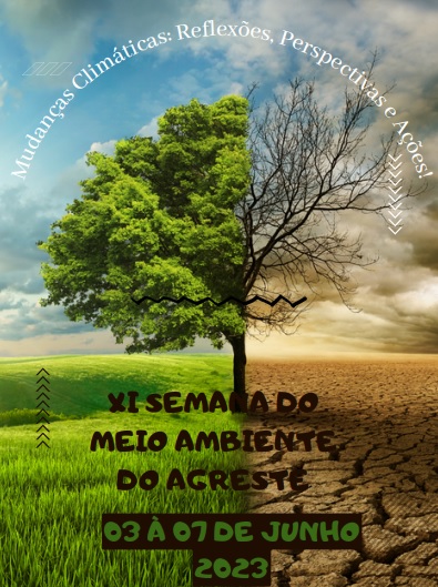 Venha participar da XI Semana do Meio Ambiente do Agreste, o evento promovido pelo Grupo de Gestão Ambiental Avançada – GAMA do Centro Acadêmico do Agreste da UFPE conta com o apoio da Prefeitura de Municipal de Caruaru, através da Serviços Públicos e Sustentabilidade, além da ACIC, IFPE-Caruaru, IFPE-Belo Jardim, IFPE-Pesqueira, ASCES-UNITA, FAVIP WYDEN, Conselho de Defesa do Meio Ambiente – CONDEMA, Associação SOS Rio Ipojuca, Agência Estadual de Meio Ambiente – CPRH, Associação de Catadores de Caruaru, Associação Conhecer e Preservar, Rotary Club Caruaru, EcoMemorial, CREA-PE e Instituto Ambiental – IMOA. O evento acontecerá no período de 03 à 07 de junho, celebrando a Semana Mundial do Meio Ambiente, com diversas atividades abertas ao público. O Evento este ano terá como Tema: Mudanças Climáticas (Reflexões, Perspectivas e Ações). Visando criar uma consciência ambiental na população, haverá práticas sustentáveis por meio de apresentações culturais, palestras, mesas redondas, workshop e gincanas.